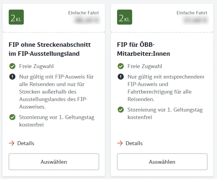 ℹ️ Regional trains are sometimes operated by other private railways where ÖBB FIP Tickets are not accepted. If in doubt, check the operator via the provider’s website or Bahn.de.